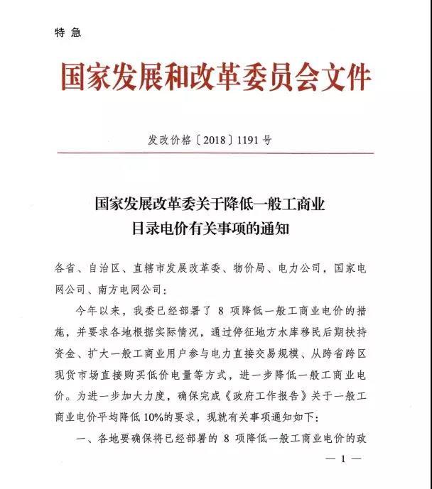 這也是國家發(fā)改委今年第五次發(fā)文件降低一般工商業(yè)電價!