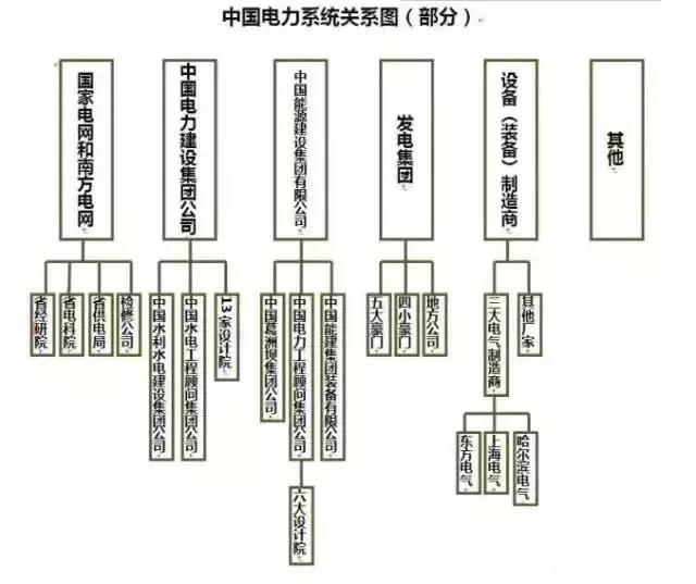 電力產(chǎn)業(yè)鏈中,有著電建公司、電網(wǎng)公司、電科院、六大電力設(shè)計院、五大發(fā)電集團(tuán)、四小豪門、三大電氣制造廠等。那么,他們之間到底有著怎樣的關(guān)系呢?(文末總結(jié)成圖表)