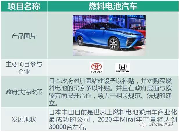 日本是資源短缺型國家,因此非常積極的探索石油以外的其他能源,日本政府對(duì)氫能和燃料電池的推廣力度在世界范圍內(nèi)都是最大的。目前,日本在家庭用燃料電池?zé)犭娐?lián)供固定電站和燃料電池汽車商業(yè)化運(yùn)作方面都是最成功的。