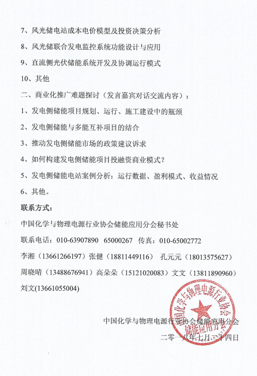 為進一步推進儲能在發(fā)電側(cè)上的項目規(guī)劃、安全施工、系統(tǒng)集成技術(shù)應(yīng)用、運營模式、電網(wǎng)接入、標(biāo)準(zhǔn)體系、風(fēng)光儲電站考核機制、調(diào)度模式、儲能項目備案、審批流程和體制機制等方面展開深入討論,中國化學(xué)與物理電源行業(yè)協(xié)會儲能應(yīng)用分會聯(lián)合全國微電網(wǎng)與分布式電源并網(wǎng)標(biāo)準(zhǔn)化技術(shù)委員會、中國電力工程顧問集團西北電力設(shè)計院有限公司、中國電建集團西北勘測設(shè)計研究院有限公司、中國科學(xué)院電工研究所儲能技術(shù)組、深圳市科陸電子科技股份有限公司等單位聯(lián)合主辦“首屆全國發(fā)電側(cè)儲能技術(shù)與應(yīng)用高層研討會”,現(xiàn)將有關(guān)事項通知如下: