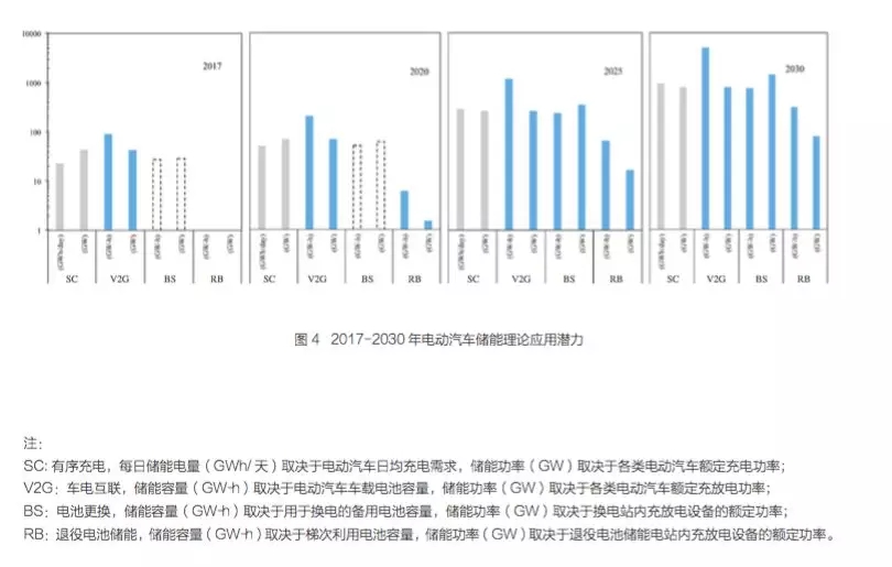 電動汽車可通過有序充電、車電互聯(lián)、退役電池儲能等方式直接或間接參與電力系統(tǒng)運行,實現(xiàn)與儲能相同或相似的系統(tǒng)應(yīng)用價值??紤]到未來電動汽車的高市場滲透率,其2030年理論儲能規(guī)??蓾M足高比例可再生能源系統(tǒng)中小時級電力平衡,有效解決當(dāng)前困擾可再生能源發(fā)展的電力系統(tǒng)短期調(diào)峰能力不足的問題。