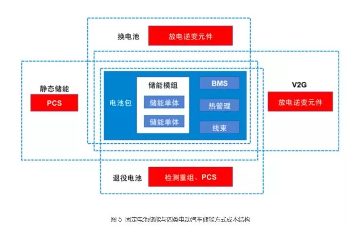 除車輛行駛所需電能外,V2G可將動力電池剩余電能反送電網(wǎng),從而實現(xiàn)與固定電池相似的儲能作用。但與有序充電不同,電動汽車V2G涉及車載充放電機或新型電機控制器的硬件升級,因而會帶來較為明顯的新增投資。與固定電池儲能系統(tǒng)類似,儲能單元(動力電池)成本是V2G經(jīng)濟性的重要影響因素。