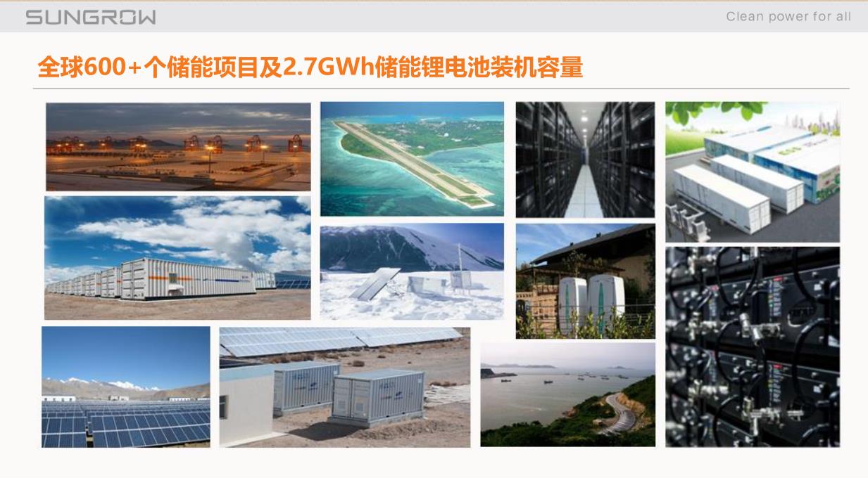 最后介紹一下我們的典型案例。我們現(xiàn)在全球儲能系統(tǒng)已經(jīng)超過600多個,目前我們整個儲能系統(tǒng)已經(jīng)批量發(fā)往美國、英國、德國、澳洲、日本,以及第三世界的國家。這是在英國的一個調(diào)頻項目,英國的調(diào)頻項目是獨立調(diào)頻,直接參與到電網(wǎng),因為電網(wǎng)有非常明確的輔助服務(wù)的電價,根據(jù)電價,根據(jù)你提供輔助服務(wù)的效果進行計費。這是我們在貴州20MW的儲能項目。這是在美國的全球規(guī)模最大的一個單體150MWh的調(diào)頻的項目。我們在2011年在上海洋山港做電力調(diào)頻項目,當時它用的是超級電容器的儲能原件。這是我們在全球海拔最高的西藏雙湖縣做的大型光伏儲能系統(tǒng)。我們在國內(nèi),特別是在一些環(huán)境非??量痰膮^(qū)域做了一些項目,對于產(chǎn)品的可靠性提出了非常嚴峻的要求。包括海島的,我們知道,海島防延誤的要求非常高,如果防延誤措施做得不合理,短短一個月,整個系統(tǒng)就會被腐蝕。