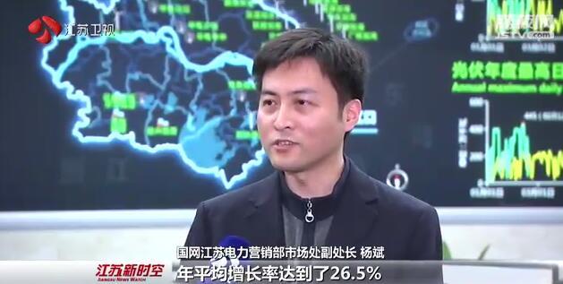 國(guó)網(wǎng)江蘇電力營(yíng)銷部市場(chǎng)處副處長(zhǎng) 楊斌:“近年來(lái),我們江蘇的新能源發(fā)電發(fā)展迅速,年平均增長(zhǎng)率達(dá)到了26.5%。截至目前,我們新能源的發(fā)電裝機(jī)容量已經(jīng)占到我們?nèi)⊙b機(jī)容量的20%左右?!?