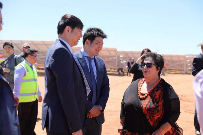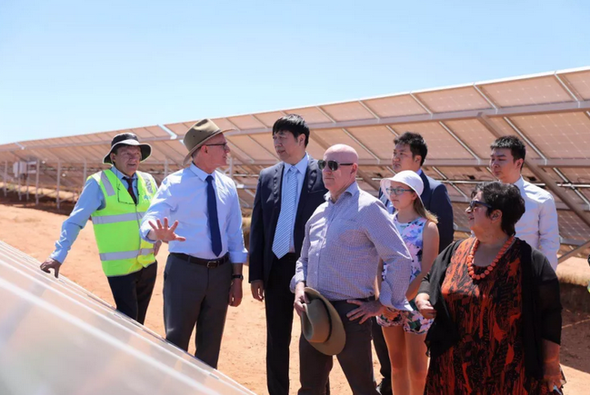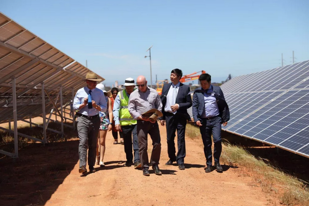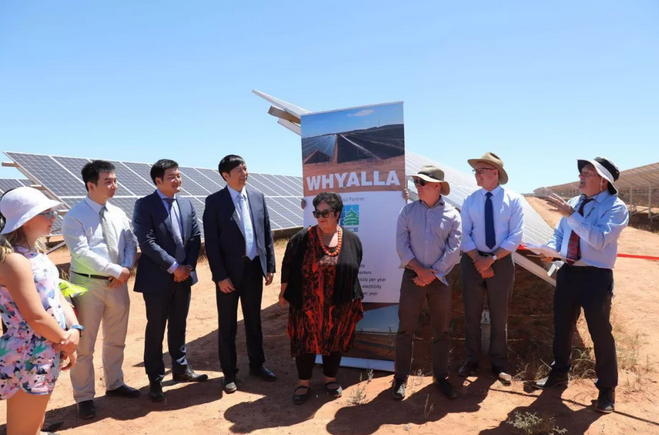 南澳州長(zhǎng)杰伊·韋瑟、選區(qū)議員埃迪·休斯、Whyalla市長(zhǎng)琳恩·布魯爾等一行在王棟、王野帶領(lǐng)下參觀光伏電站