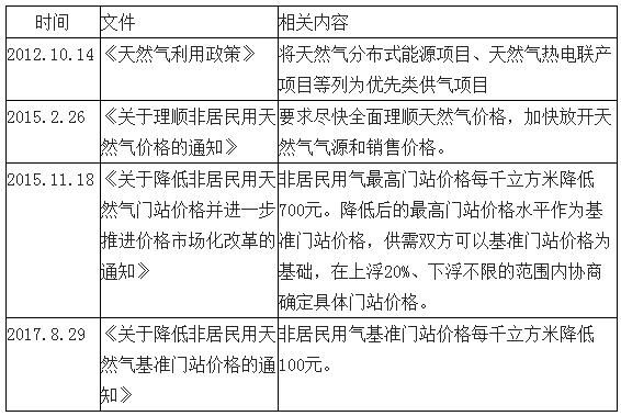 另一方面,近年來(lái),國(guó)家陸續(xù)制訂天然氣政策對(duì)天然氣分布式能源行業(yè)進(jìn)行扶持:2012年出臺(tái)的《天然氣利用政策》,將天然氣分布式能源項(xiàng)目、天然氣熱電聯(lián)產(chǎn)項(xiàng)目等列為優(yōu)先類(lèi)供氣項(xiàng)目;2015年11月,發(fā)改委發(fā)布通知,非居民用氣門(mén)站價(jià)格每千立方米降低700元;2017年8月,發(fā)改委再次調(diào)整非居民用氣基準(zhǔn)門(mén)站價(jià)格,每千立方米下調(diào)100元。隨著天然氣價(jià)格的下調(diào),天然氣交易市場(chǎng)化推進(jìn),世紀(jì)新能源的成本不斷下降。