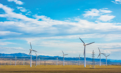 圖為位于新疆烏魯木齊市達坂城區(qū)的風(fēng)力發(fā)電設(shè)施