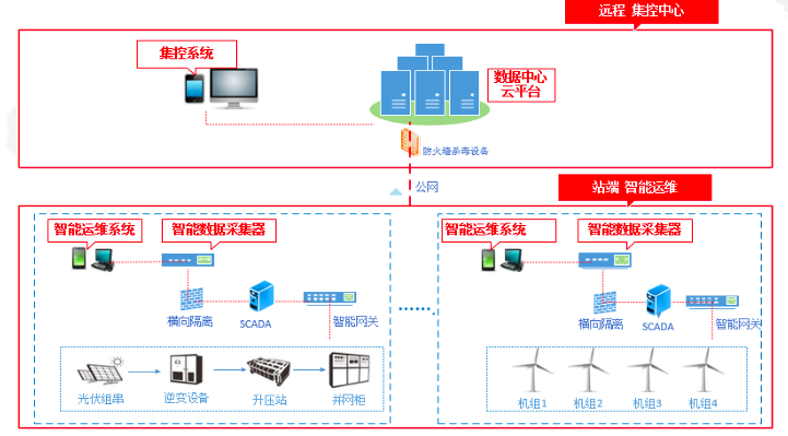 “科諾偉業(yè)新能源智能運(yùn)維解決方案(iCoronaCloud 解決方案)” 是一套完整的新能源電站運(yùn)行、維護(hù)、經(jīng)營的管理方案,從電站現(xiàn)場運(yùn)維管理到遠(yuǎn)程集中監(jiān)視及分析,滿足發(fā)電企業(yè)高效智能運(yùn)維的需要。全套解決方案包括數(shù)據(jù)中心云平臺(tái)、集控系統(tǒng)、運(yùn)維管理系統(tǒng)、智能數(shù)據(jù)采集器。主要應(yīng)用于多個(gè)光伏電站的遠(yuǎn)程集中監(jiān)視及智能運(yùn)維、多個(gè)風(fēng)電場的遠(yuǎn)程集中監(jiān)視及智能運(yùn)維、區(qū)域分布式能源的集控與智能運(yùn)維、多個(gè)變/配電站的智能運(yùn)維等領(lǐng)域。