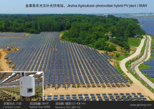 圖為錦浪逆變器的安徽金寨的農(nóng)光互補(bǔ)光伏電站應(yīng)用案例