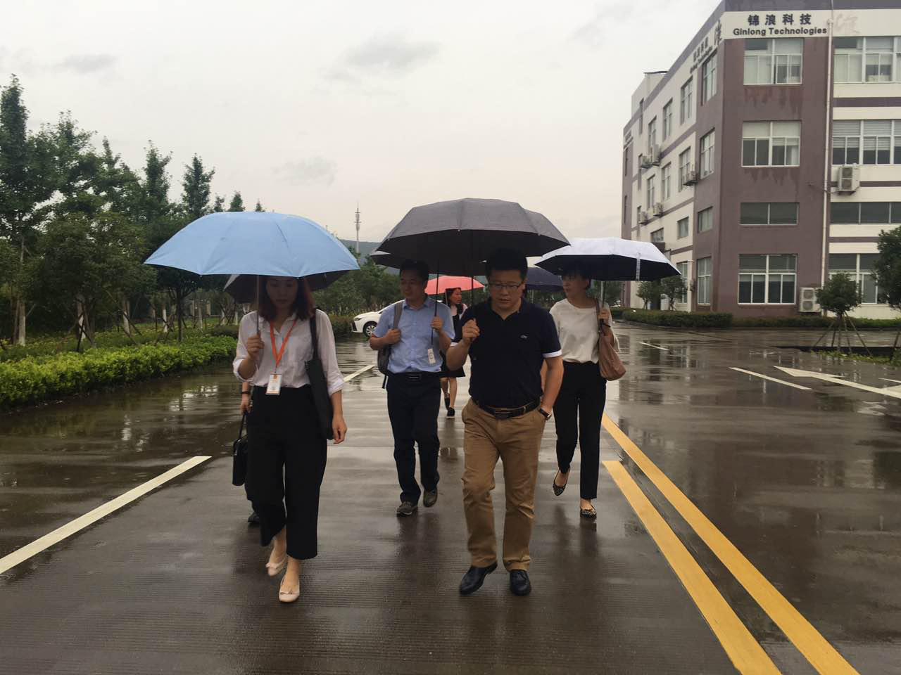 圖為儲能產(chǎn)業(yè)調(diào)研團(tuán)參觀錦浪廠區(qū)