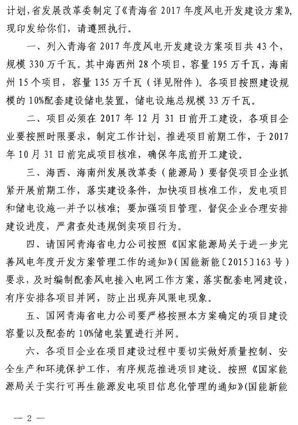青海此次配置的43個(gè)、總計(jì)3.3GW的風(fēng)電項(xiàng)目分別位于海西州(28個(gè)、1.95GW)和海南州(15個(gè)、1.35GW)。這些項(xiàng)目被要求在2017年10月底前完成核準(zhǔn),年底前開(kāi)工建設(shè)。建成并網(wǎng)時(shí),國(guó)網(wǎng)青海電力公司將嚴(yán)格要求配套的10%儲(chǔ)電裝置進(jìn)行并網(wǎng)。