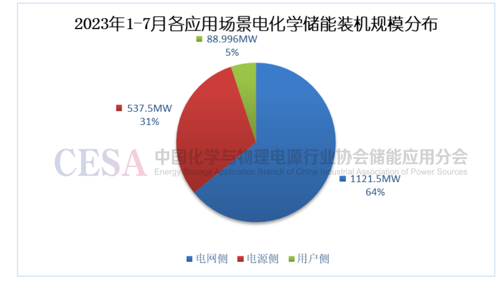 圖2 2023年1-7月各應(yīng)用場景電化學(xué)儲能裝機規(guī)模分布圖
