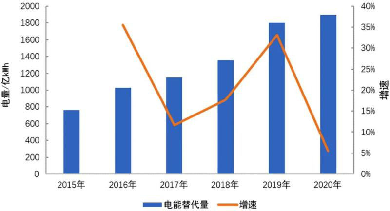 實施電能替代戰(zhàn)略可以提高全社會電氣化水平,提升居民生活水平和社會生產(chǎn)效率,緩解環(huán)境污染,保障我國能源安全。近年來,電能替代技術(shù)在多領(lǐng)域推廣應(yīng)用,替代規(guī)模不斷擴大,替代電量以工農(nóng)業(yè)生產(chǎn)制造領(lǐng)域為主導,電力供應(yīng)與消費領(lǐng)域、交通運輸領(lǐng)域、居民采暖領(lǐng)域及家庭電氣化領(lǐng)域協(xié)同發(fā)展。但實施過程中,依然存在經(jīng)濟性弱等制約因素,未來拓展電能替代廣度深度的難度加大。預(yù)計“十四五”期間電能替代依然保持較大規(guī)模,是拉動用電增長的重要力量。