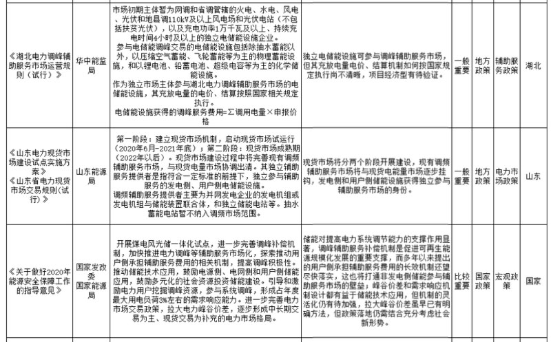 本月,國家層面先后印發(fā)《關(guān)于做好2020年能源安全保障工作的指導(dǎo)意見》和《2020年能源工作指導(dǎo)意見》,作為指導(dǎo)2020年能源工作方向的政策文件,再次提出輔助服務(wù)市場長效機(jī)制建設(shè)路線,即探索推動用戶側(cè)承擔(dān)輔助服務(wù)費(fèi)用的相關(guān)機(jī)制,這也將是破解眾多電力發(fā)展難題的關(guān)鍵,而不同應(yīng)用領(lǐng)域和投資主體擁有的儲能系統(tǒng)必將得益于電力市場長效機(jī)制的建立,身份定位和補(bǔ)償支付也將趨于合理化。同時,國家層面已研究落實峰谷價差執(zhí)行政策,但在現(xiàn)有大環(huán)境下,實質(zhì)性政策落地仍需時日。在市場化改革深入推進(jìn)過程中,已開展多年的需求響應(yīng)工作還有必要得到深化設(shè)計,其調(diào)用規(guī)則和基準(zhǔn)線設(shè)計等不能再停留在初級階段,要更加適應(yīng)現(xiàn)有電力系統(tǒng)的發(fā)展,同時其背后的長效機(jī)制,即過渡階段的付費(fèi)問題和長遠(yuǎn)階段的靈活價格機(jī)制同樣需要突破。除資金來源差異外,現(xiàn)有需求響應(yīng)和用戶調(diào)峰輔助服務(wù)存在重疊,但規(guī)則設(shè)計卻不在同一維度。2020年,已研究多年的儲能示范項目征集工作有望啟動,至此產(chǎn)業(yè)內(nèi)主體已不關(guān)注示范項目的資金補(bǔ)貼問題,更希望能夠自上而下引領(lǐng)行業(yè)發(fā)展進(jìn)步,落實配套政策并支持儲能的商業(yè)化應(yīng)用。