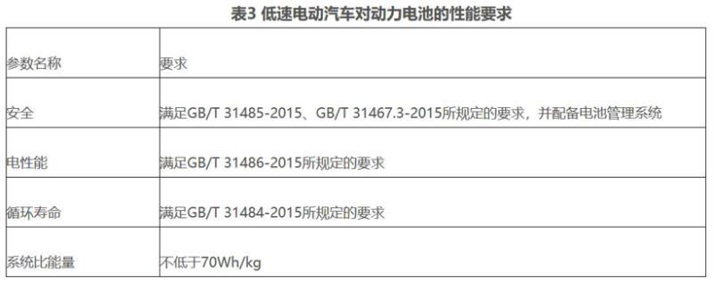 表3 低速電動汽車對動力電池的性能要求