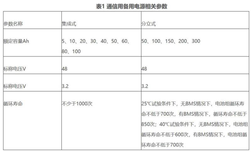 通信基站出于安全方面的考慮,對電池材料進行了限制,僅使用磷酸鐵鋰電池。電池分為分立式和集成式兩種,兩者的區(qū)別在于電池模塊與電池管理系統(tǒng)是否集成為一體。廢舊電池在這兩種形式的電源上均能實現(xiàn)梯次利用,對比兩種電源的相關標準(YD/T?2344.1—2011 通信用磷酸鐵鋰電池組?第1部分:集成式電池組、YD/T 2344.2-2015 通信用磷酸鐵鋰電池組 第2部分:分立式電池組),可以看出兩者僅在循環(huán)壽命的要求上存在較大差異,其他指標要求幾乎相同。