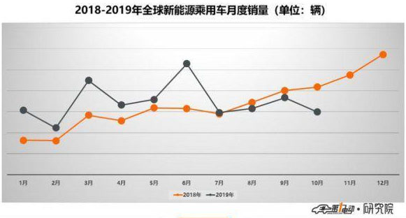 市場(chǎng)滲透率來(lái)看,2019年10月,全球新能源乘用車(chē)市場(chǎng)份額為1.9%,全球平均占比2.2%。最后的兩個(gè)月能否將滲透率提高至6月的2.4%,還有待觀望。