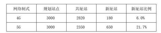 表2 4G/5G新址站建設比例