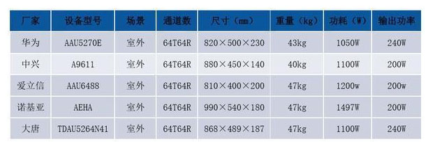 表1 當前主流5G主設備AAU參數對照表