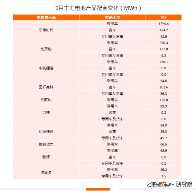 比亞迪方面隨著比亞迪車型產(chǎn)量的回升,裝機量9月環(huán)比上升40.1%,市場占有率有所提升。