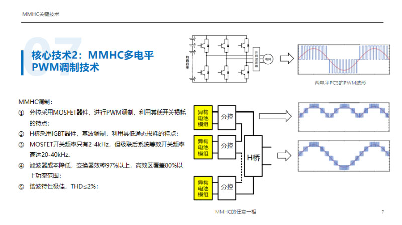4、高電能質量,傳統(tǒng)PCS的THD=24%,MMHC的理論THD是1.9%,我們實測1.96%,這個電能質量可以為核磁共振的高精度設備供電。