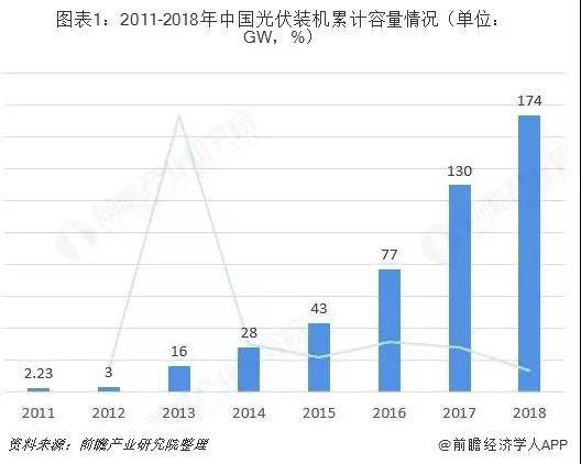 2018年開始,由于光伏發(fā)電成本不斷下降以及光伏補(bǔ)貼缺口的出現(xiàn),度電補(bǔ)貼開始下調(diào),531新政的到來加速了行業(yè)洗牌和技術(shù)降本進(jìn)程,2018年我國光伏累計(jì)裝機(jī)容量174GW,新增裝機(jī)44GW,在全球110GW的新增裝機(jī)中占比40%,冠居全球。