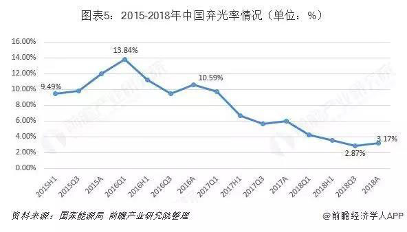政府一系列政策相繼出臺(tái),棄光現(xiàn)象得到有效改善。根據(jù)國家能源局?jǐn)?shù)據(jù)顯示,自2015年以來,我國棄光率呈波動(dòng)下降的趨勢(shì)。棄光率從2016第一季度的13.84%高位,波動(dòng)下降,至2018年第三季度,棄光率已經(jīng)降至的2.87%。