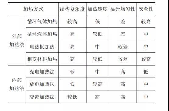 表1. 動力電池不同加熱方法性能對比