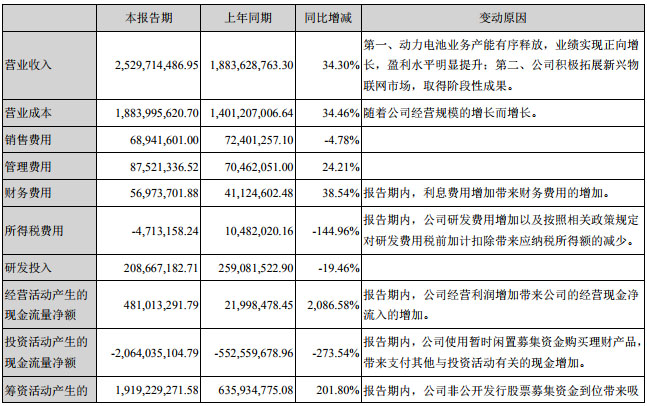 鋰離子電池業(yè)務(wù)的營業(yè)收入由小型鋰離子電池和動(dòng)力電池構(gòu)成。報(bào)告期內(nèi),隨著產(chǎn)能穩(wěn)定、有效的釋放,共實(shí)現(xiàn)營業(yè)收入18.74億元,與上年同期相比增長47.64%,實(shí)現(xiàn)了較大幅度的增長。