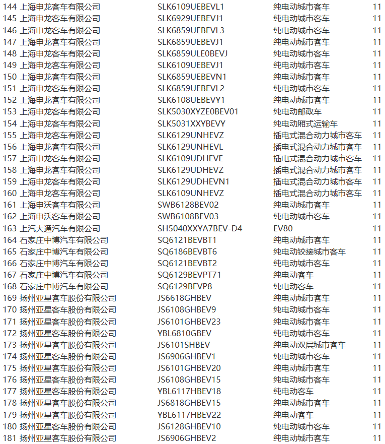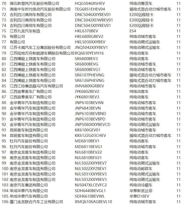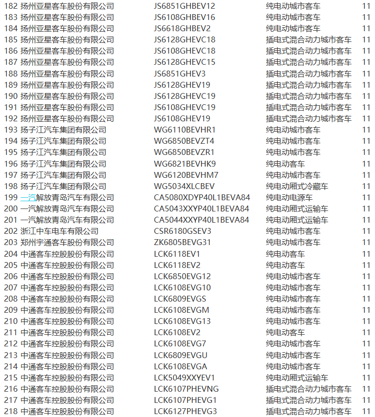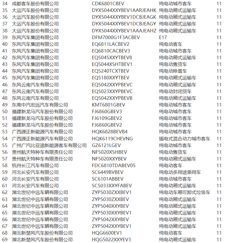 《目錄》中,北汽福田共10款車型上榜,安凱汽車7款車型、比亞迪4款車型、北汽新能源3款車型、金龍客車6款車型、亞星客車逾20款車型等榜上有名。