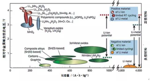 鋰離子電池采用可嵌入鋰的材料作負(fù)極,含鋰的化合物作正極,聚丙烯/聚乙烯多孔膜作隔離層,鋰鹽溶于有機(jī)溶劑作電解液,正極材料、負(fù)極材料、隔膜和電解液構(gòu)成鋰離子電池的四種關(guān)鍵材料。鋰離子電池正負(fù)極材料體系非常豐富,高電位可逆釋放鋰離子的含鋰化合物和低電位可逆儲(chǔ)存鋰離子的材料均可構(gòu)成其正極和負(fù)極材料。
