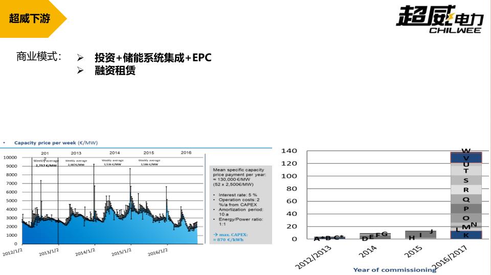 我們針對(duì)這樣的電池,針對(duì)不同的應(yīng)用場(chǎng)景,設(shè)計(jì)了幾個(gè)系列的集裝箱產(chǎn)品,這個(gè)逐漸會(huì)在一些展會(huì)上大家也會(huì)了解到這塊產(chǎn)品的指標(biāo)和價(jià)格。除了系統(tǒng)集成,還有下游的EPC工程也是超威目前定位的市場(chǎng)。綜合下來,我們超威目前在儲(chǔ)能領(lǐng)域的商業(yè)模式可以分為兩類:一是投資+儲(chǔ)能系統(tǒng)集成+EPC;另外可以通過融資租賃的形式,跟相關(guān)的電廠合作。