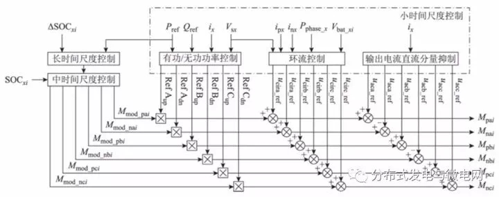基于此,提出了一種適用于儲能型模塊化多電平系統(tǒng)的多時(shí)間尺度控制方法。根據(jù)不同的時(shí)間尺度劃分,可將整體控制分為三層,并為每層控制設(shè)定了各自的控制目標(biāo)。在該控制方式下,僅需估算每個(gè)電池組的相對健康程度,即可確定各子模塊的輸出功率,進(jìn)而改善電池組的健康狀況,使其趨于一致,延長儲能系統(tǒng)的使用壽命。最后通過Matlab仿真和實(shí)驗(yàn)驗(yàn)證了該控制方法的有效性和可行性。