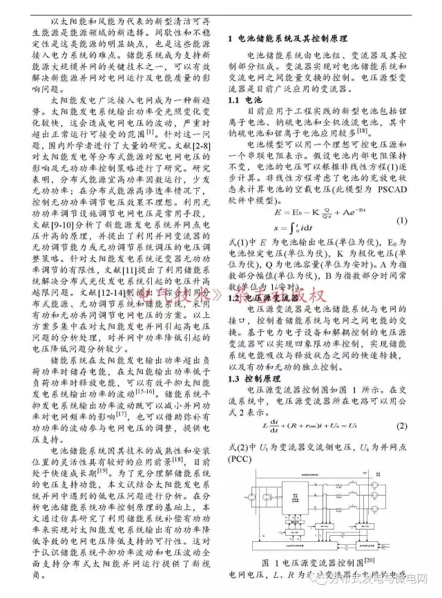 中國(guó)儲(chǔ)能網(wǎng)訊:黃河水利水電開(kāi)發(fā)總公司的研究人員李憲棟、石月春,在2017年第8期《電氣技術(shù)》雜志上撰文,為了研究?jī)?chǔ)能系統(tǒng)的電壓支持功能,分析了利用儲(chǔ)能系統(tǒng)解決太陽(yáng)能發(fā)電系統(tǒng)引起的電網(wǎng)電壓波動(dòng)問(wèn)題的可行性。