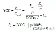 中國防化科學研究院楊裕生院士等學者最先提出了YCC指數(shù)方法式中,YCC為經(jīng)濟效益指數(shù);Rtotal為總收益,元/kW·h;Ctotal為總成本,元/kW·h;Rout為釋能電價,元/kW·h;Rin為儲能電價,元/kW·h;η為儲能系統(tǒng)效率;C為輸出1 kW·h電能的初始投資, 元/kW·h;C0為輸出1 kW·h電能的運行成本,元/kW·h;DOD為充放電深度;L為循環(huán)次數(shù);Pm為儲能系統(tǒng)的收益率,%。