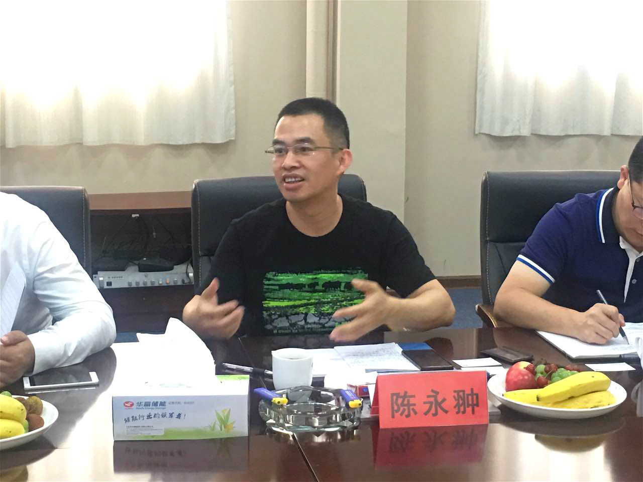華富儲能董事會秘書周壽斌、副總經(jīng)理于尊奎以及技術(shù)中心主任吳戰(zhàn)宇博士等企業(yè)高管參加了與儲能產(chǎn)業(yè)調(diào)研團(tuán)的交流。