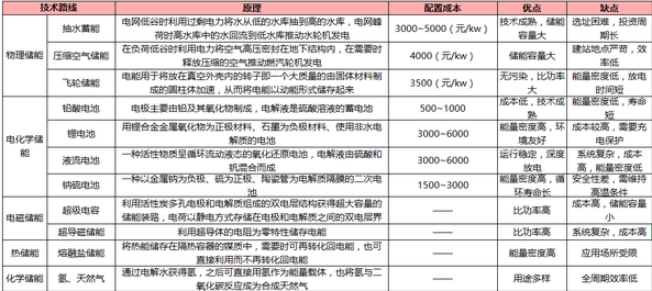 儲能技術(shù)路線對比