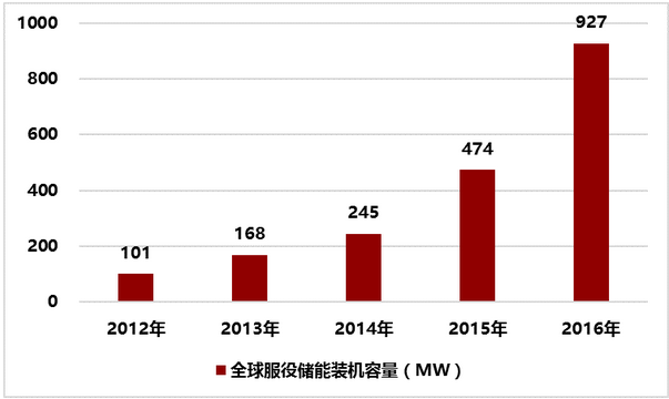 2012-2016年全球服役儲能裝機(jī)容量