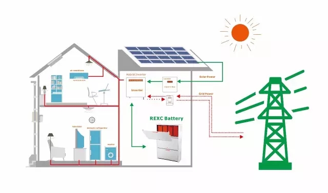 光伏發(fā)電系統(tǒng)在太陽輻照度強的時候,依靠太陽能向負載供電,如果用不完,可以利用儲能系統(tǒng)將多余的太陽能儲存起來,以后在夜間或者陰雨天時,戶用儲能系統(tǒng)便可以為用戶供電。