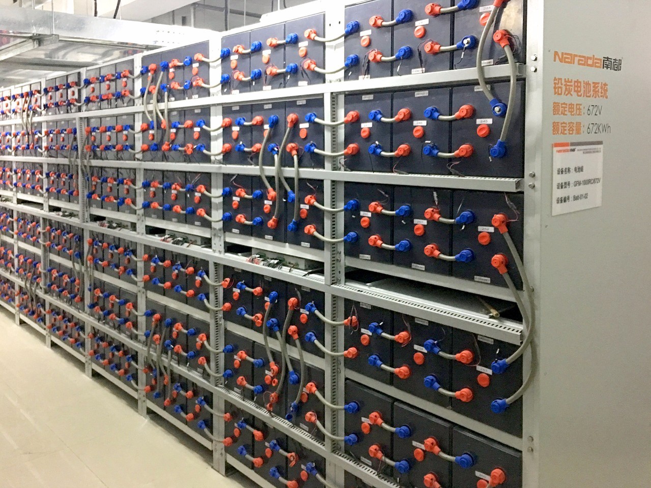 電站一期工程的鉛炭電池儲(chǔ)能規(guī)模功率為0.75MW,額定儲(chǔ)能容量為6MWh。主要設(shè)備包括南都鉛炭電池4032節(jié)、電池管理系統(tǒng)BMS控制柜3臺(tái)、交流并網(wǎng)開(kāi)關(guān)柜2臺(tái)、監(jiān)控通信柜等。