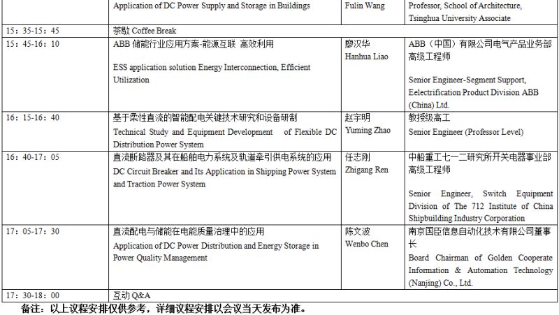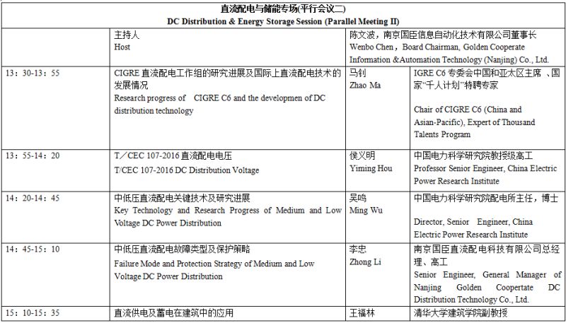 以下為直流配電與儲能專場具體議程安排。