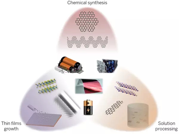 在光伏器件、燃料電池、電池、 超級電容器等中石墨烯的集成,為不斷增加的全球能源驅(qū)動的需求設(shè)備提供了機遇和應(yīng)對挑戰(zhàn)。石墨烯天然的二維特性具有超高的比表面積,可達2200m2/g,同時也兼顧有高導(dǎo)電性和柔性,使石墨烯成為電荷儲存、離子儲存和氫氣儲存的有效材料。其他二維晶體,比如過渡金屬硫族化合物(TMDs)和過渡金屬氧化物,也成為能源應(yīng)用很有前景的選擇。使用二維晶體這樣的優(yōu)勢,采用旋凃過程或者疊層組裝方法,有可能根據(jù)“需求”創(chuàng)造和設(shè)計出分層人工結(jié)構(gòu)。