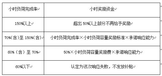 需求響應(yīng)承諾協(xié)議明確2015年全年響應(yīng)調(diào)度累計不超過10次,不超過20小時,每次調(diào)用響應(yīng)量原則上不超過負(fù)荷集成商各類項目承諾響應(yīng)能力之和,對于發(fā)布的需求響應(yīng)調(diào)度指令,負(fù)荷集成商應(yīng)全部參加執(zhí)行。獎勵資金根據(jù)每小時實際響應(yīng)情況單獨核算,不同響應(yīng)項目類別單獨核算。夏季、冬季響應(yīng)項目單獨核算(目的在于盡快下發(fā)獎勵資金予以支持),冬季響應(yīng)結(jié)束后根據(jù)全年執(zhí)行情況進行統(tǒng)一清算。具體補貼核算辦法為: