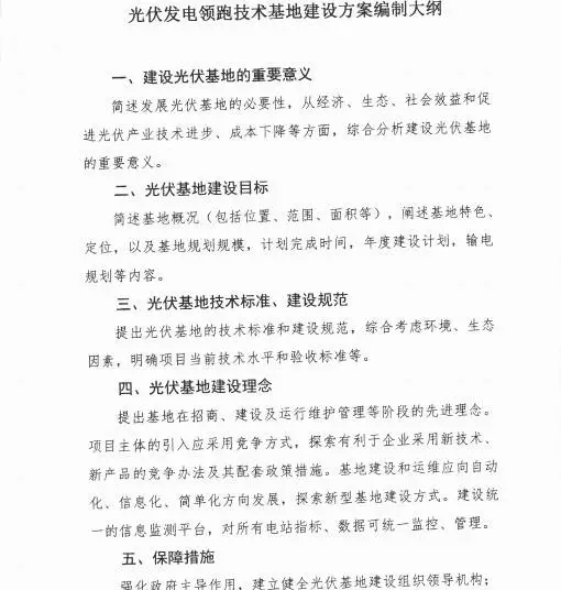 附件:1. 光伏發(fā)電領(lǐng)跑技術(shù)基地建設(shè)方案編制大綱