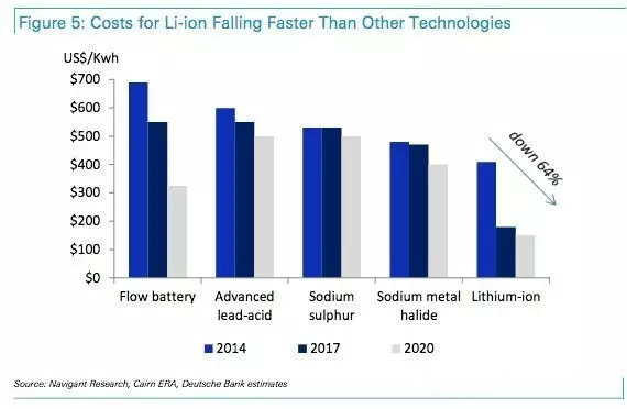 德意志銀行的報(bào)告專門提到了特朗普就任美國總統(tǒng)的影響。報(bào)告認(rèn)為,特朗普上臺(tái)后美國對可再生能源的補(bǔ)貼政策和研發(fā)經(jīng)費(fèi)將會(huì)縮水,但是對于儲(chǔ)能市場本身卻可能是歪打正著的推動(dòng),因?yàn)闇p少了補(bǔ)貼的間歇性可再生能源的繼續(xù)發(fā)展將更依賴于儲(chǔ)能技術(shù)。