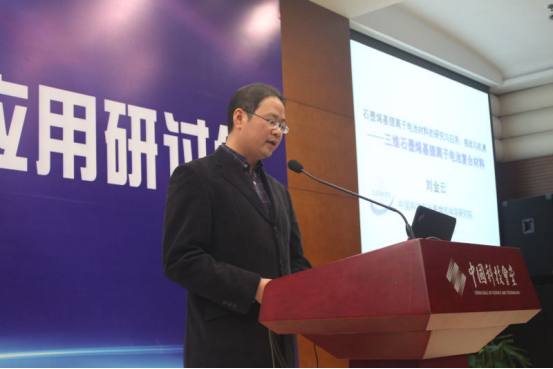 中科院合肥物質(zhì)科學研究院副研究員劉金云博士以“石墨烯基鋰離子電池材料研究與應用”為題,介紹了鋰離子電池存在的問題和主要挑戰(zhàn),以及國內(nèi)外三維石墨烯基復合電池材料的研究工作?!叭S石墨烯電導率高,質(zhì)量輕,孔隙率高,比表面積大,三維框架結(jié)構(gòu)機械性能好,具有力學柔性。三維結(jié)構(gòu)利于表/界面化學反應,機械形變緩沖,離子擴散與電子轉(zhuǎn)移,可減小粘結(jié)劑等添加劑的影響。”