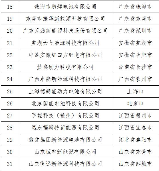 附件:符合《動力蓄電池行業(yè)規(guī)范條件》企業(yè)名錄(第四批)