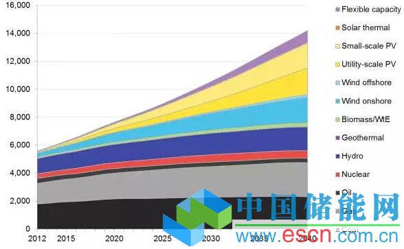 第一、光伏裝機快速增加。受益于轉(zhuǎn)換效率的提升、新材料和新工藝的應(yīng)用,未來光伏平準(zhǔn)化發(fā)電成本有近一半的下降空間。這將促使光伏裝機將快速發(fā)展,有望在2040年達到37億千瓦,成為僅次于火電的第二大裝機。事實上,成本下降將取代可再生能源扶持政策(上網(wǎng)電價政策、凈計量政策等),成為驅(qū)動可再生電源發(fā)展的最重要因素。風(fēng)電裝機也有望在2040年達到20億千瓦,緊隨光伏成為第三大電源。而為了應(yīng)對可再生電源大量接入而給電網(wǎng)帶來的波動,靈活電源(包括電池、需求側(cè)響應(yīng)、可以快速啟動的氣電等)的裝機容量也將達到8.6億千瓦。