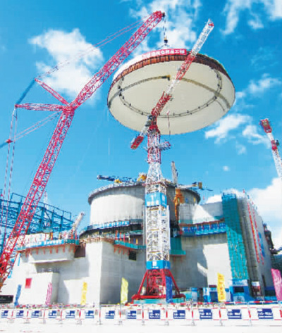 “從核島筏基第一罐混凝土澆筑到穹頂順利吊裝,臺山核電站1號機(jī)組只用了24個月。而芬蘭奧爾基盧奧托核電站用了48個月,法國弗拉芒維爾核電站3號機(jī)組至今尚未進(jìn)行穹頂?shù)跹b,臺山核電建造工期較國外在建同類堆型電站整整縮短了一半。”中核華興臺山核電項目部經(jīng)理周博介紹。