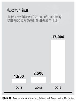 目前為止只有幾家汽車制造商在生產(chǎn)電動汽車,所以隨著更多汽車制造商將電動汽車投入市場,電動汽車的銷量仍將增長。獲得資助的A123系統(tǒng)公司將為即將推出的雪佛蘭“火花”提供電池。但通用汽車表示,該車的預計產(chǎn)量仍然很小。